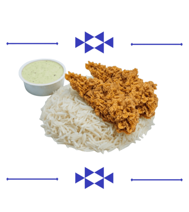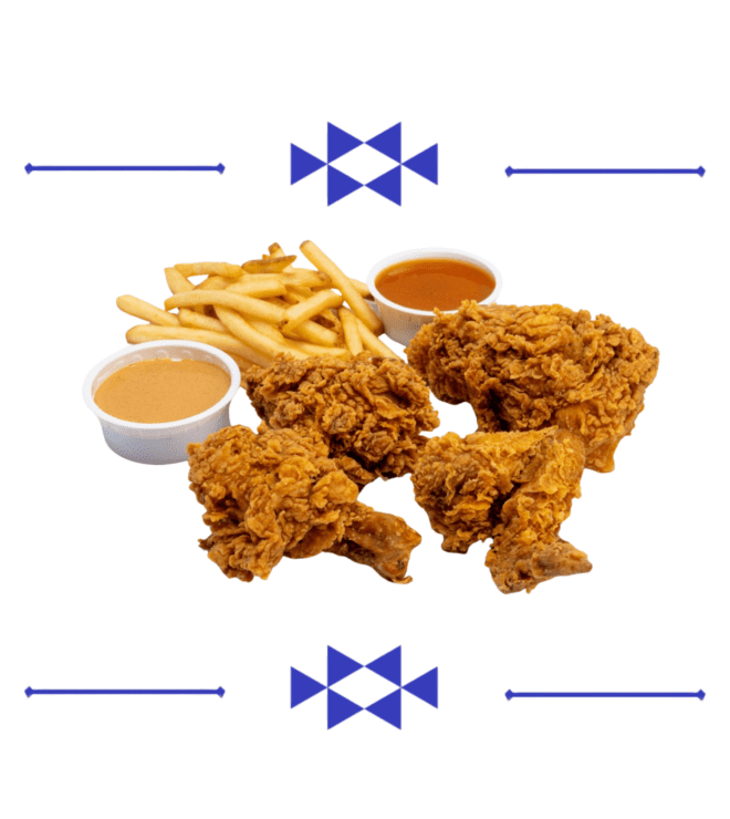 Golden, crunchy fried chicken with Dabboos seasoning, crispy on the outside, juicy on the inside. Served with French fries.