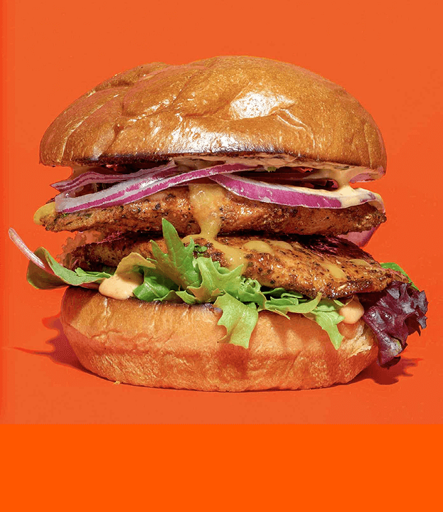 Marinated grilled chicken that delivers full flavor without the heaviness, perfect for lighter cravings. Have it with rice or as a burger.
